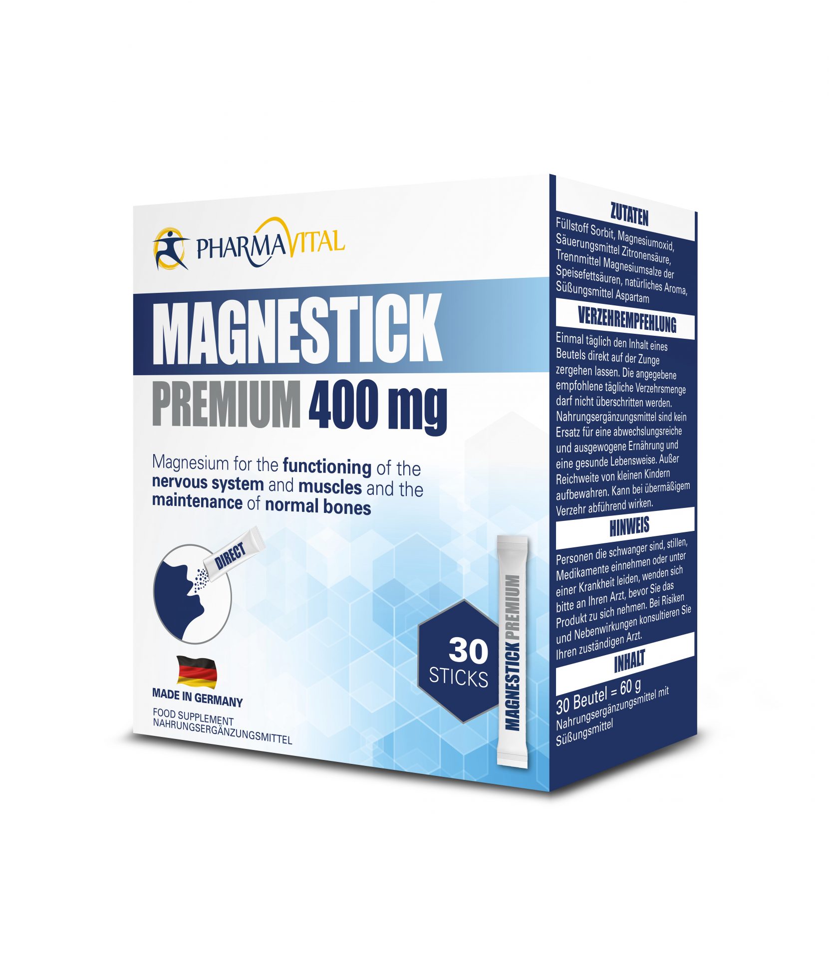 Magnesium ist ein essentielles Mineral welches zu einer normalen Muskelfunktion, zum Elektrolytgleichgewicht und zum Erhalt normaler Knochen und Zähne beiträgt. Desweiteren hilft Magnesium Ermüdung und Müdigkeit zu reduzieren.