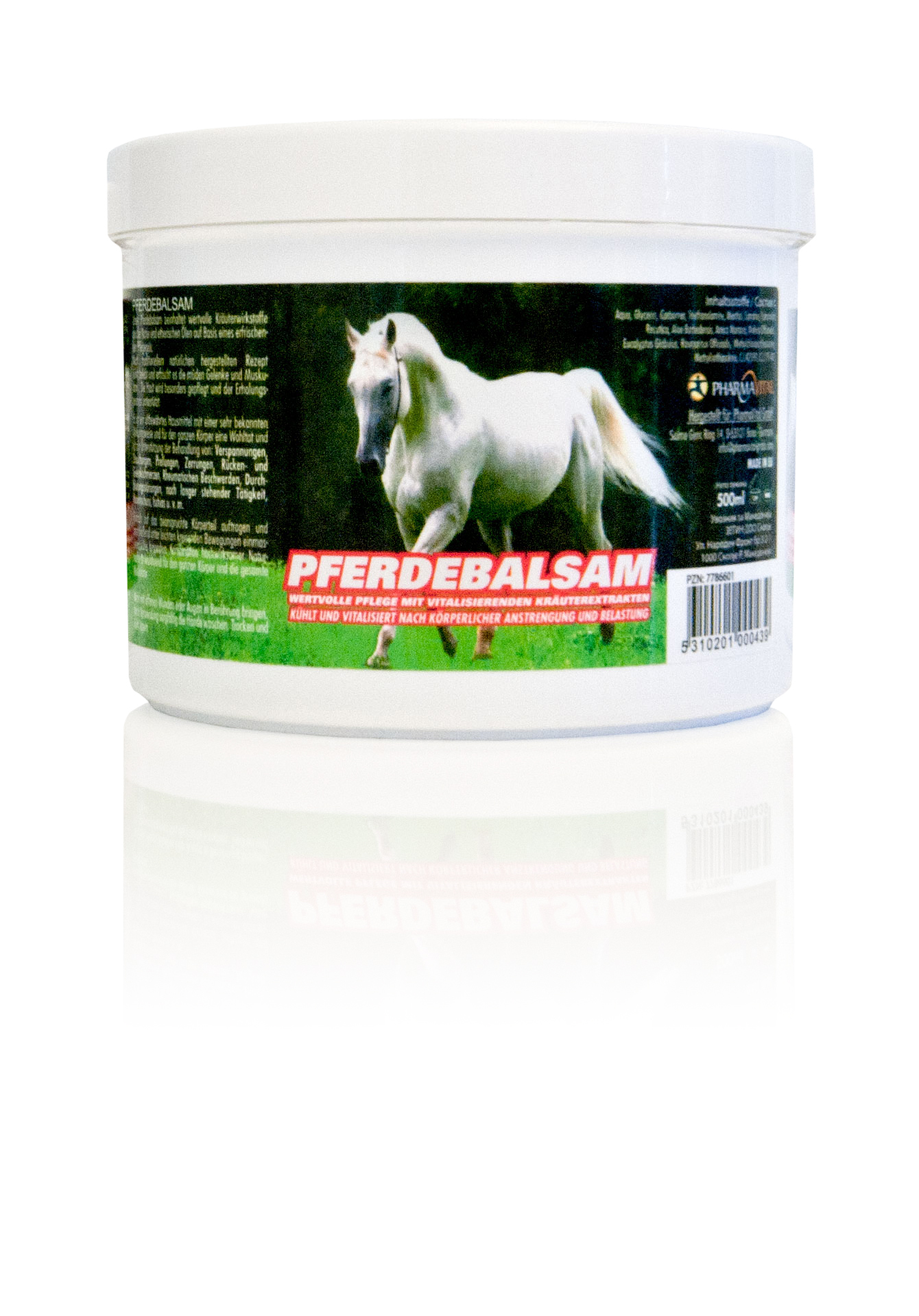 Unser Pferdebalsam beinhaltet wertvolle Kräuterwirkstoffe aus der Natur und etherischen Ölen auf Basis eines erfrischenden Pflegegels. Nach traditionellem Rezept hergestellt kühlt, belebt und erfrischt es die müden Gelenke und Muskulatur. Die Haut wird besonders gepflegt und der Erholungsprozess unterstützt. Es ist ein altbewährtes Hausmittel mit einer sehr bekannten Wirkungsweise und für den ganzen Körper eine Wohltat und ist zur Unterstützung der Behandlung von Verspannungen, Stauchungen, Prellungen, Zerrungen, Rücken- und Gelenkschmerzen, Rheumatischen Beschwerden, Durchblutungsstörungen, nach langer stehender Tätigkeit, Hexenschuss, Ischias u.v.m.. Einfach auf das beanspruchte Körperteil auftragen und anschließend unter leichten kreisenden Bewegungen einmassieren. Die besondere Kombination hochwirksamer Naturstoffe ist wohltuend für den ganzen Körper und die gesamte Muskulatur.