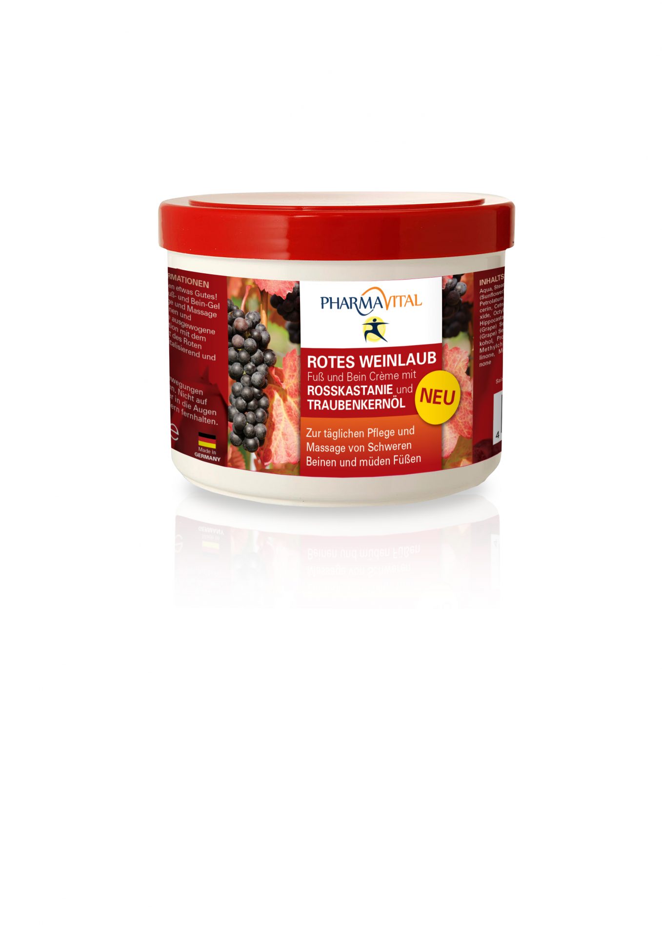 Um Ihren Füßen etwas Gutes zu tun empfiehlt sich die tägliche Pflege und Massage mit “Rotes Weinlaub Fuß und Bein-Gel” von Pharmavital. Die Schwere von Beinen kann durch den Extrakt vermindert werden. Auch andere subjektive Beschwerden bei chronischen Venenleiden lassen sich mit Rotem Weinlaub bessern.